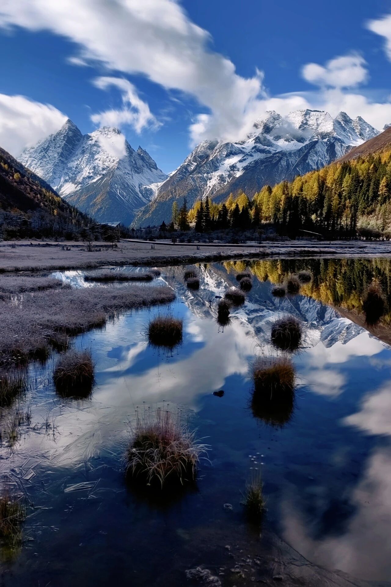 进入11月,四姑娘山已步入秋冬最佳观赏季。此时的山谷彩林斑斓,白雪初覆,山间云雾缭绕,构成一幅“半山彩林半山雪”的壮美画卷。金黄的红杉、火红的桦叶与银白的雪峰相映成趣,如同大自然打翻的调色盘。与此同时,四姑娘山秋冬户外体验也深受游客青睐。徒步者可选择穿越长坪沟的原始森林,体验雪中秘境;而在双桥沟,攀冰、赏雪亦成了四姑娘山冬日限定的户外体验。