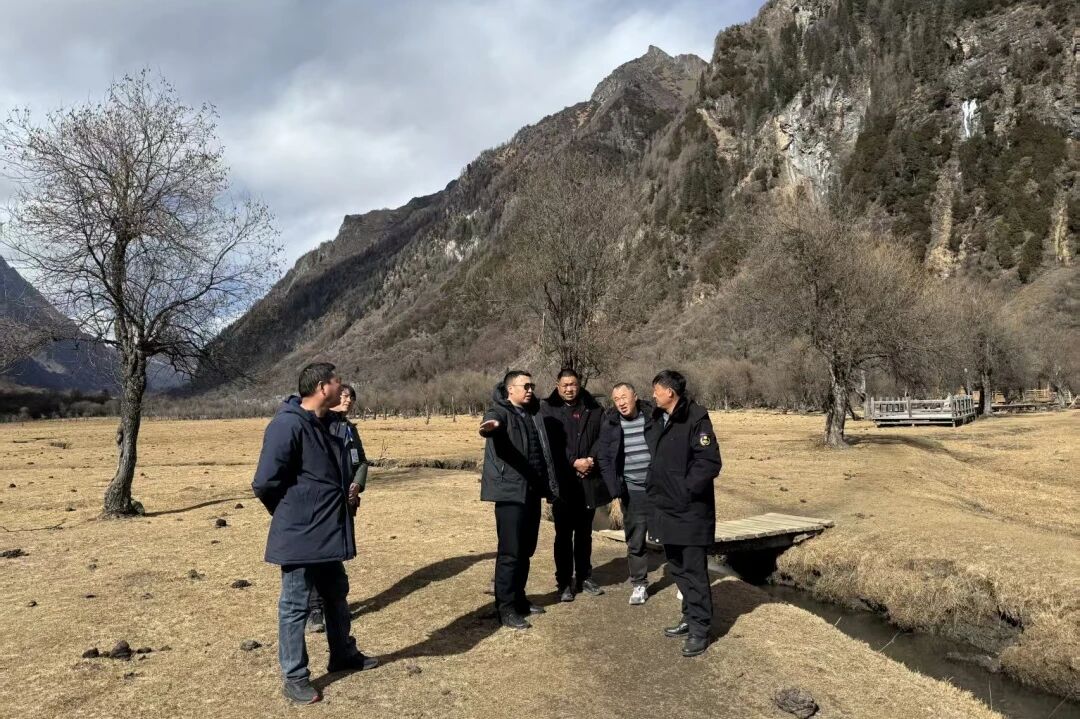 2026年2月19日(农历正月初三),四姑娘山风景名胜区管理局党委副书记、局长赵顺勇带队深入景区各关键点位,实地检查春节假期旅游接待、安全生产、森林草原防灭火、值班值守等工作,并看望慰问坚守一线的干部职工、驻景单位工作人员,向大家致以新春问候和诚挚感谢。